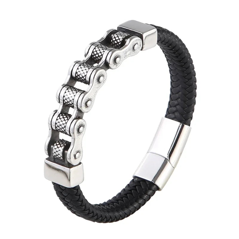 سوار جلدي كلاسيكي للرجال على شكل سلسلة قاطرة من الفولاذ المقاوم للصدأ بمشبك مغناطيسي أساور كهدية للأصدقاء مجوهرات ساحرة SP1555
