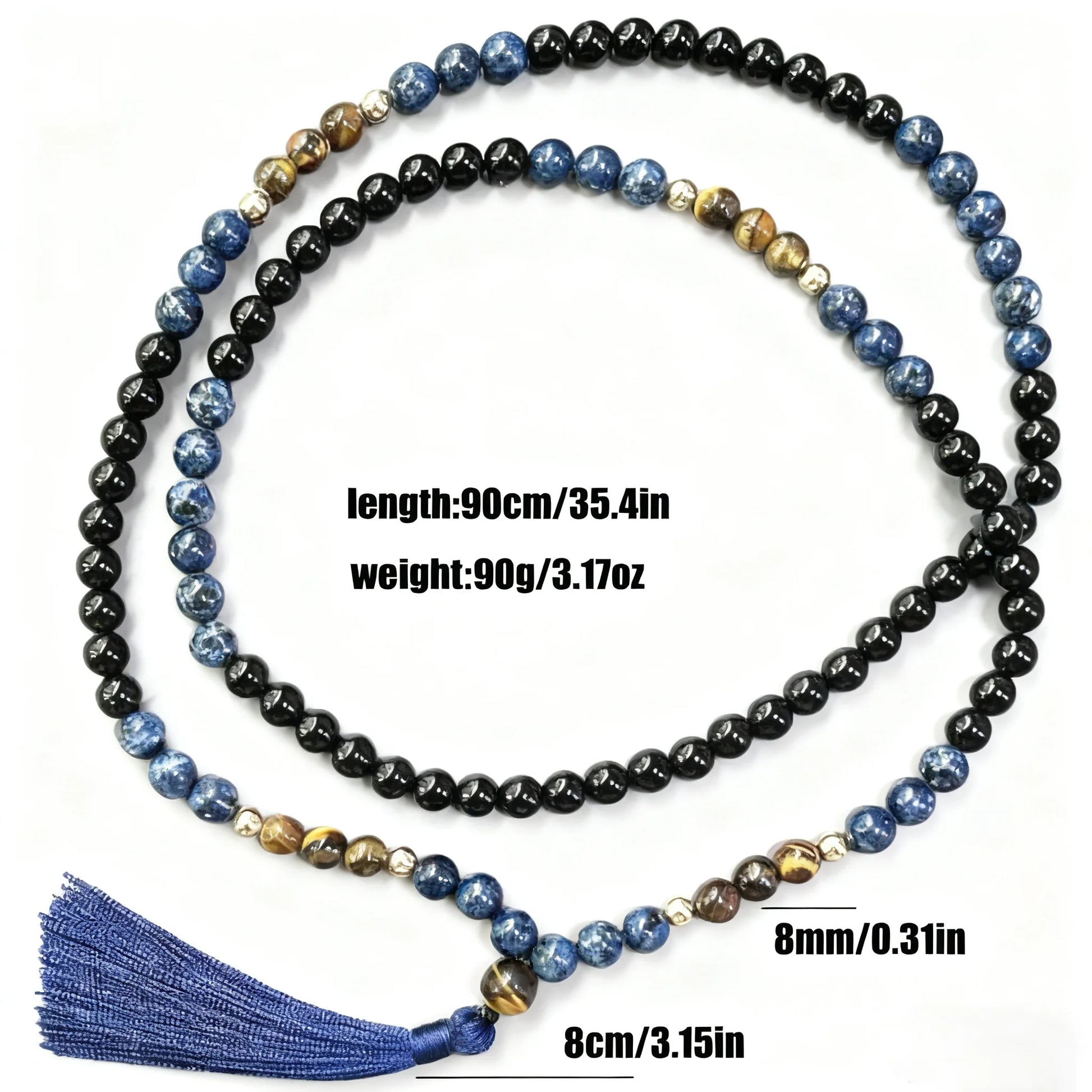 8mm Tiger Eye Stone Black Onyx 108 Mala Beads Necklace Meditation Prayer Rosary for Men and Women