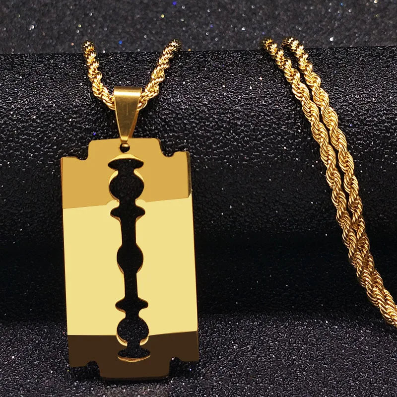 Blade Pendant Necklace – Gold Stainless Steel Chain for Men & Women