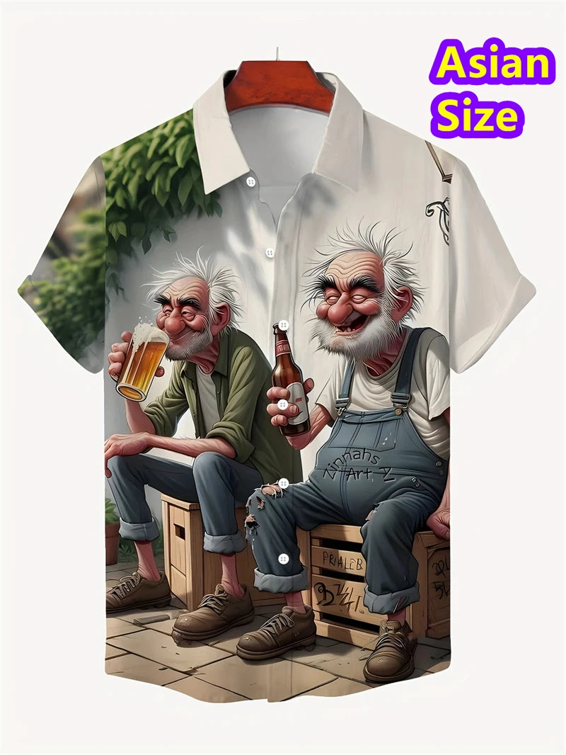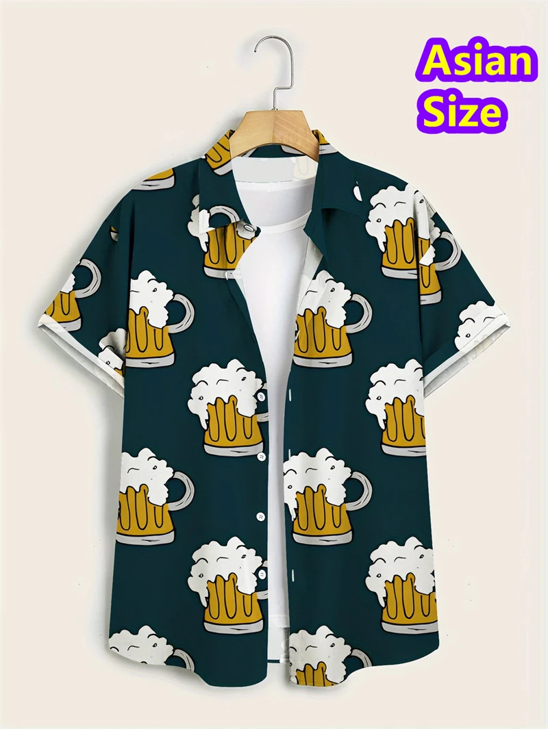 Hawaiian Shirt Man Streetwear Car Beer 3d Print Graphic Street Beach Men's Shirt Casual Short Sleeves Button-down Shirt Man Top