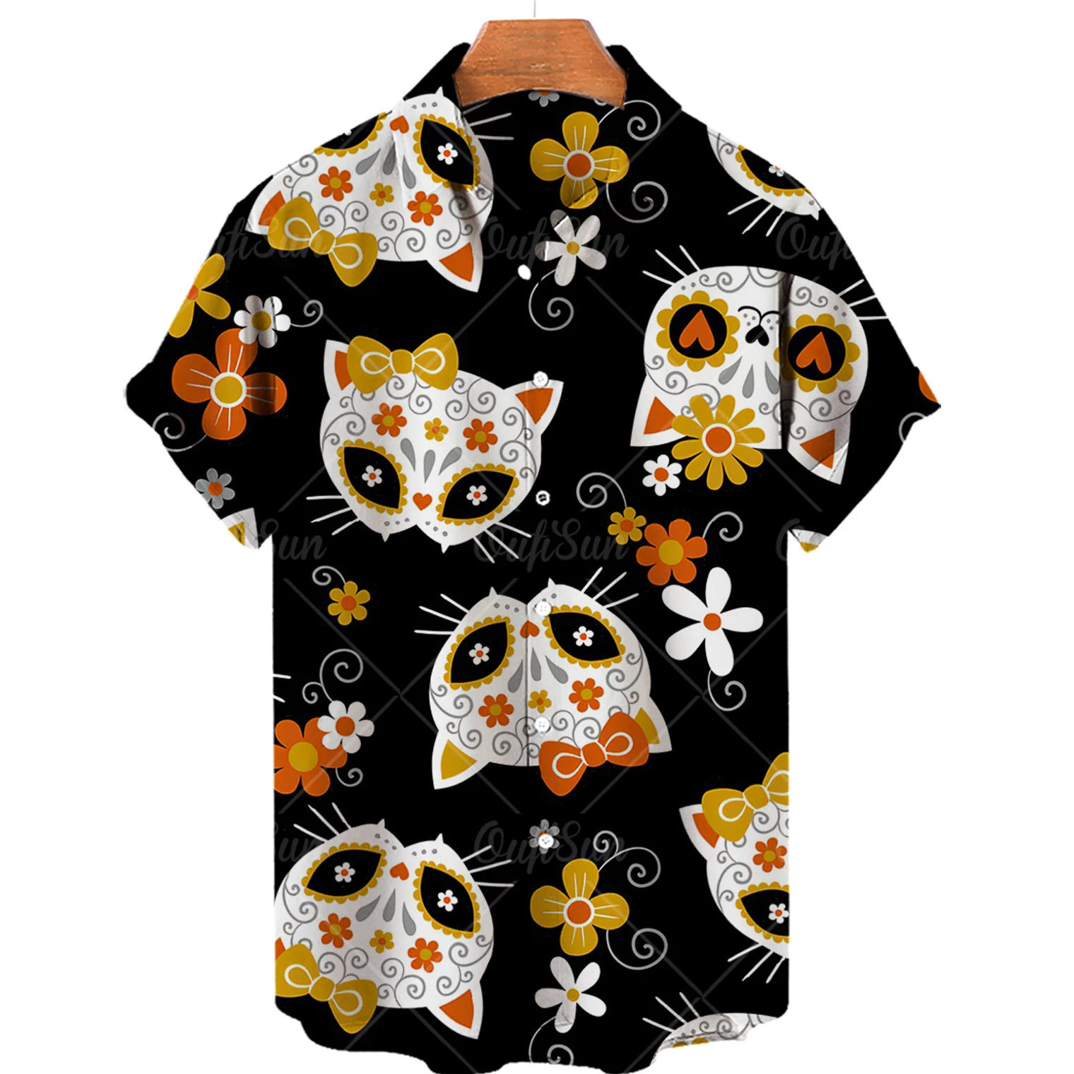 Hawaiian Summer Man Plus Size Shirt Floral 3d Lapel Casual Short Sleeve Anime Cartoon Clothes Street Retro Cat Sale Manga Curta