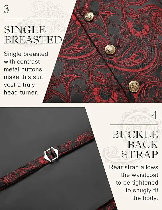 Men's Paisley Gothic Vest | Victorian Steampunk Waistcoat with Notched Lapel for Tuxedo/Formal Events Themed Weddings