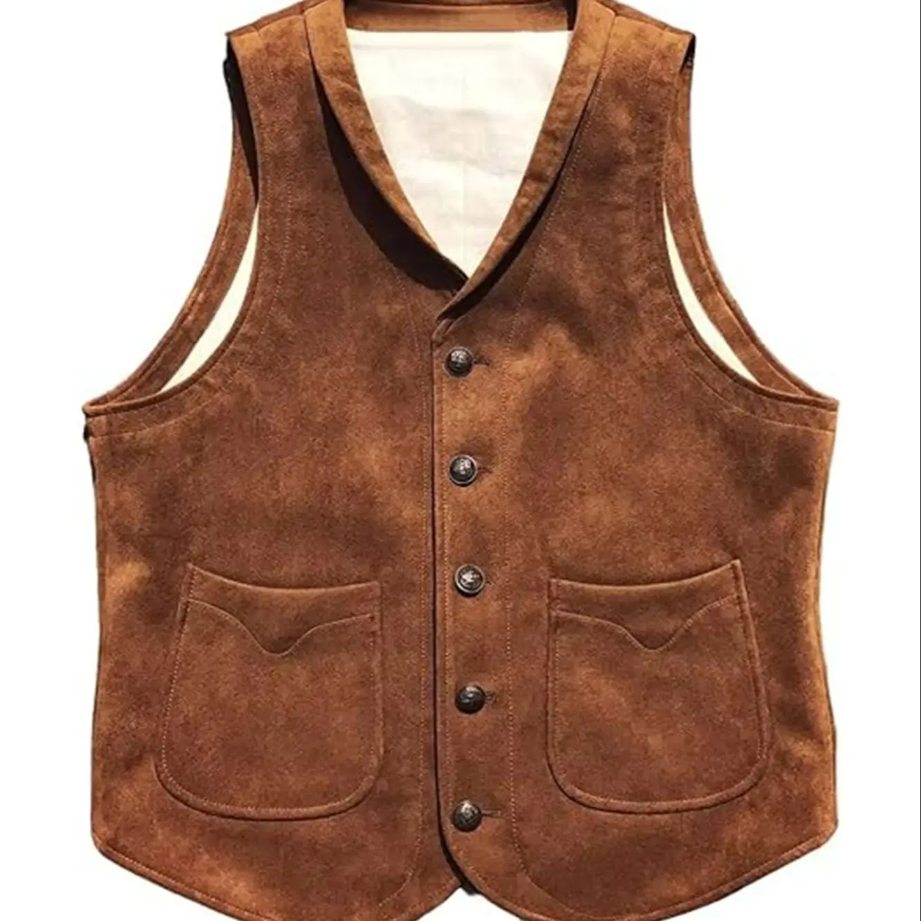 Men's Suede Leather Vest Cowhide Waistcoat Man Western Cowboy Vests with Pockets